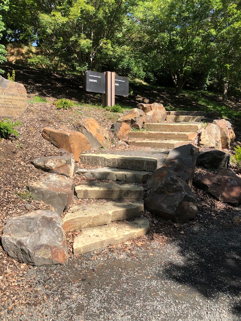 The 45-acre site displays 2500 kinds of plants arranged by geographic region of origin, including plants from Asia, Europe, and Eastern and Western North America. Spring flowers bloom Apr-May, fall colors Sep-Oct. A graveled path winds through the garden and arboretum, forming a 1.5 mile loop; additional bark-covered walking trails of more than a mile lead to beautiful views within the site.