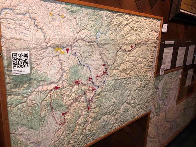Much of the museum is dedicated to teaching about the Nez Perce tribe and the tragic Nez Perce War, during which the Nez Perce, many of them led by Chief Joseph, attempted to flee to Canada rather than move from their native lands to a reservation. A highly detailed relief map shows the route of the Nez Perce and the pursuing cavalry and shows where each battle occurred. Interpretive panels around the map provide more details of significant events. The map also shows the interesting fact that much of the route of the Corps of discovery followed the same route as the flight of the Nez Perce.
