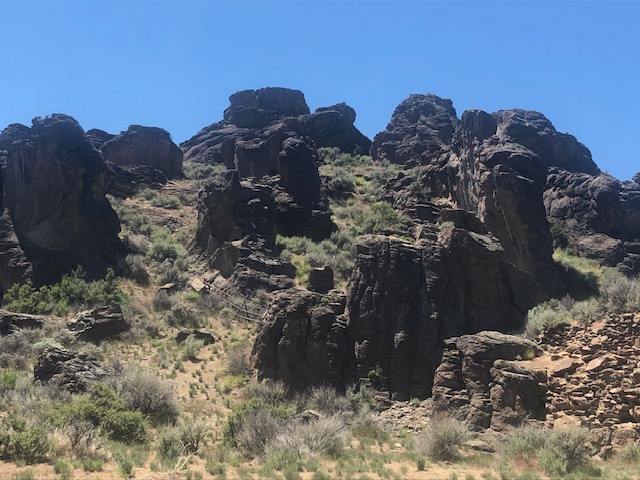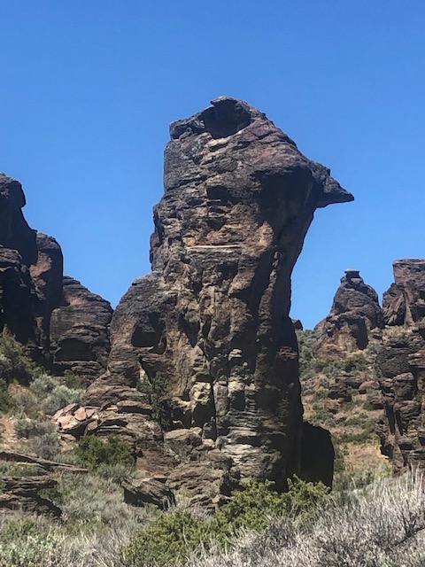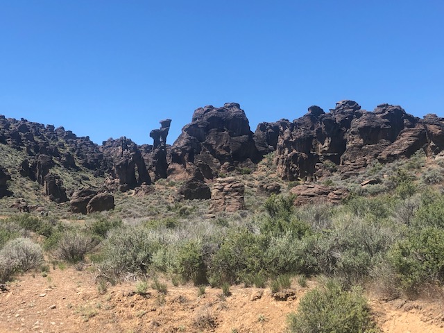 Before you head home, consider one last stop. It’s a little off our route but worth seeking out. What you’ll find are unique geologic formations: arches, spires, columns, and mushroom caps. The site is roughly 10 miles north of Gooding on Hwy 46, and another two miles on a dirt road to the parking area.