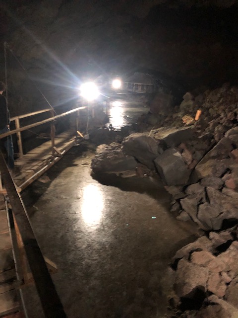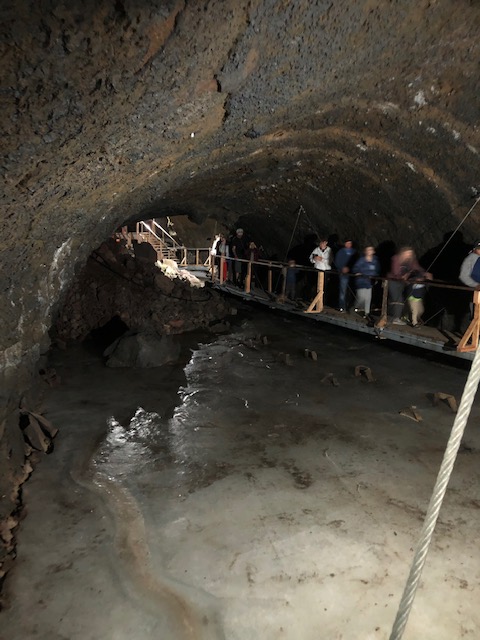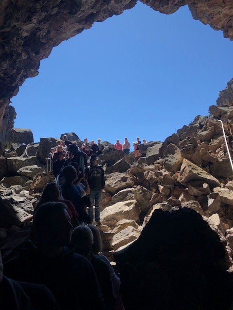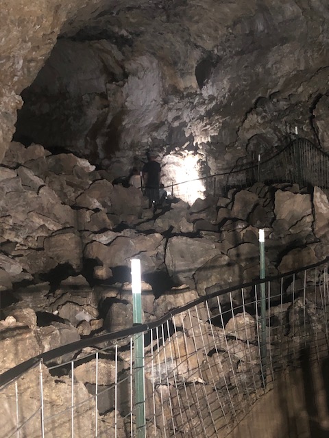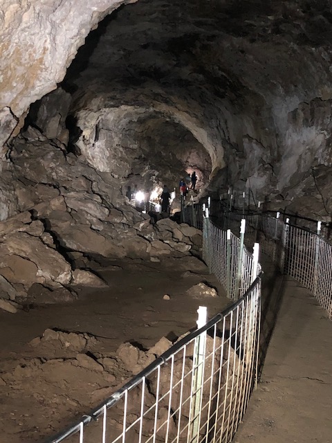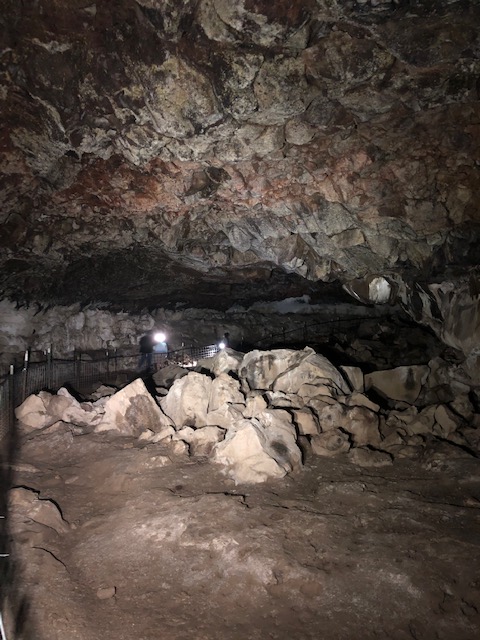 The caves are only a little more than a mile further south on Hwy 75. Guided tours begin each hour and last 45 minutes to an hour. The cave is the longest known lava ice cave in the world; the tour is a ¾ mile hike and includes 80 steps down and then back up and is perhaps moderate difficulty due to the steps.