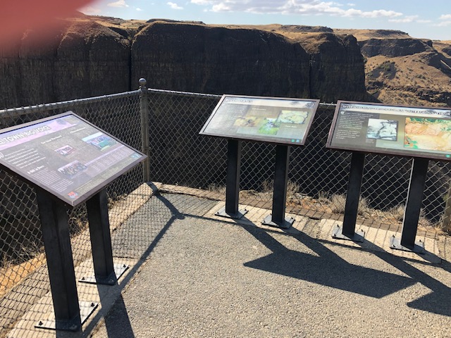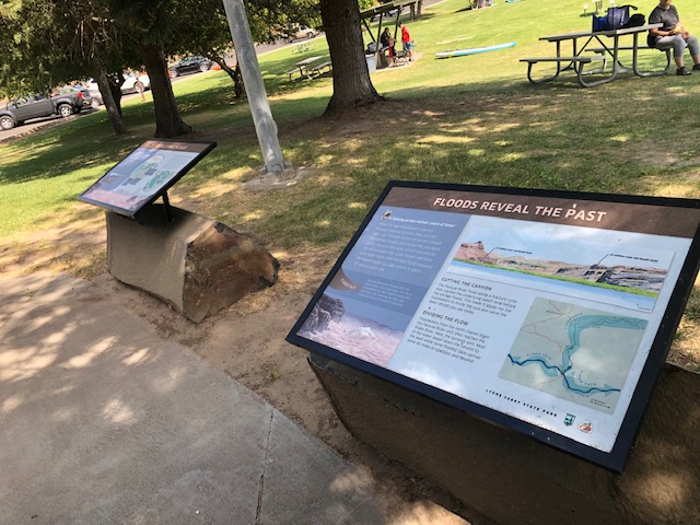 The park has a number of interpretive panels that educate the visitor about the Corps of Discovery and about geologic features of the region—they make the stop here worth it. This is a state park so a Washington State Discover Pass is required, though a visit of up to 15 minutes is allowed without a Discover Pass—just enough time to pull up to the restrooms and go read the panels (oh, and maybe use the restroom!). The park is open daily 9-5.