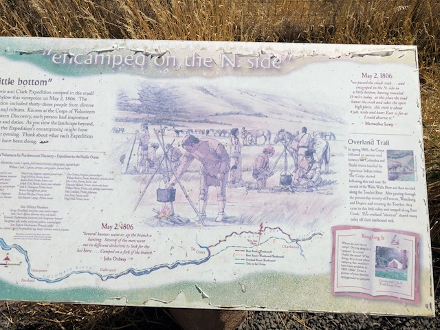 Between Waitsburg and Dayton sits the state park named for the leaders of the Corps of Discovery. A stop here is worth it just to read several interpretive panels, most of them placed near the restrooms. The park straddles US-12; you want to turn right at the park if coming from Waitsburg. This is a state park thus a Washington State Discover Pass is required; often, a stop of up to 15 minutes is allowed at park rest areas without a Discover Pass or day use fee but we didn’t see a sign to that effect but our guess is you’d be safe.