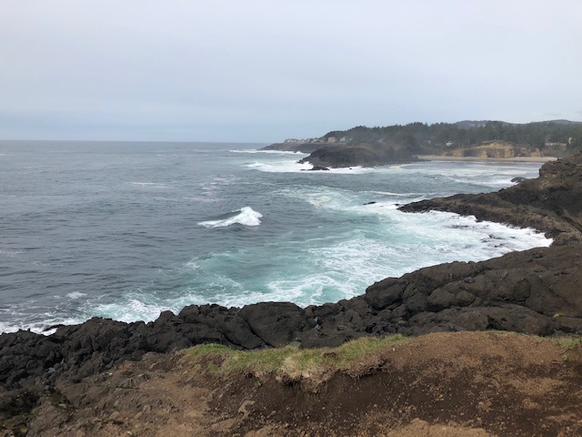 Return to US-101 and drive a little over a mile and exit right to the parking lot. Walk the fence to view the beautifully rugged and rocky coast of Boiler Bay and watch the waves crash upon the rocks. Watch cormorants diving to feed just off the coast and, from mid-March to the end of May, you may even see gray whales surfacing and blowing. Plan on 15 to 30 minutes for your visit.