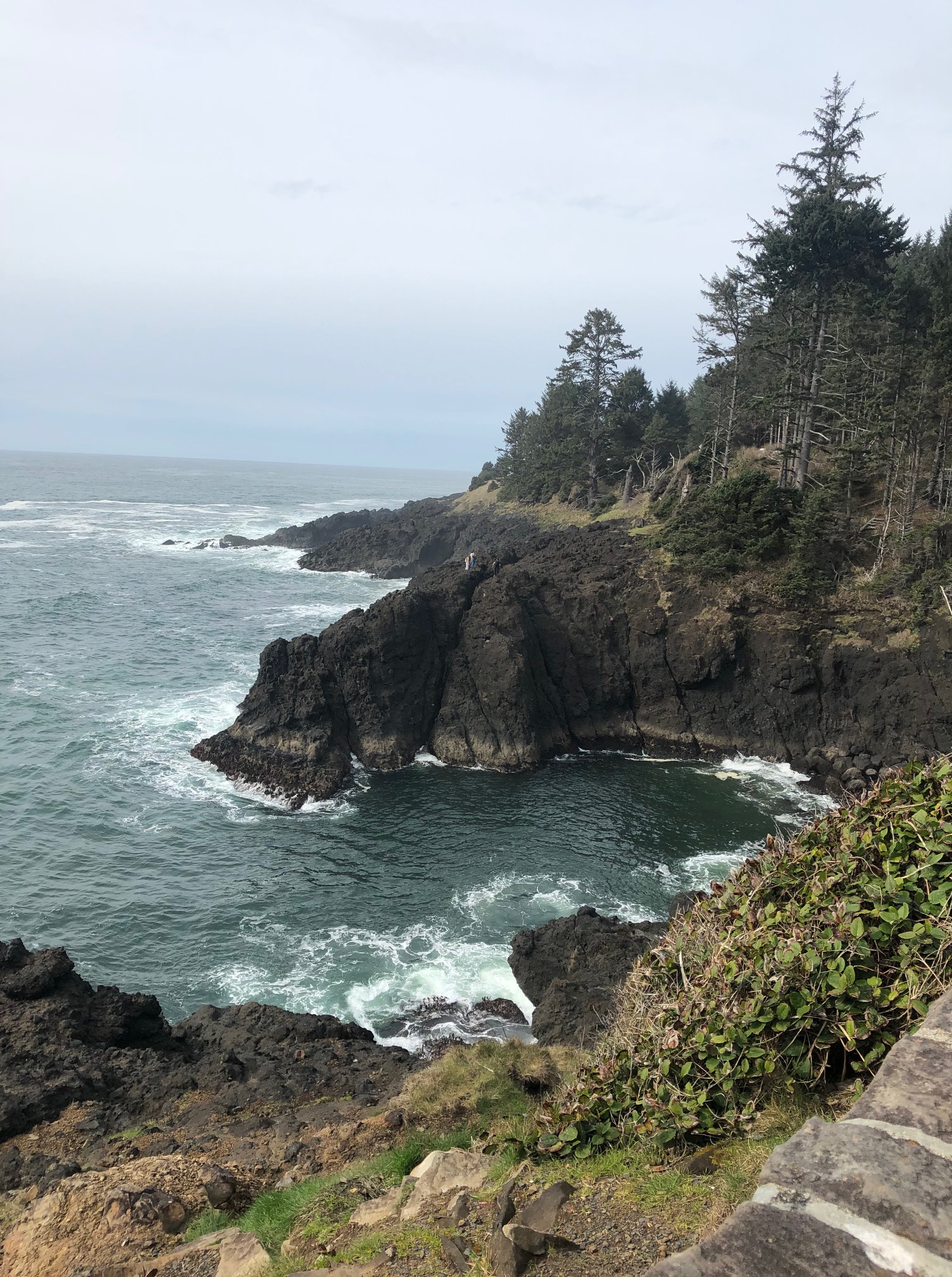 Stay on Otter Crest Loop heading south; it’s a slower and winding route—so drive carefully—but offers a superior view of the coast. After about 1.8 miles, turn right into the viewpoint parking. This site is also popular for watching for whales in the spring.