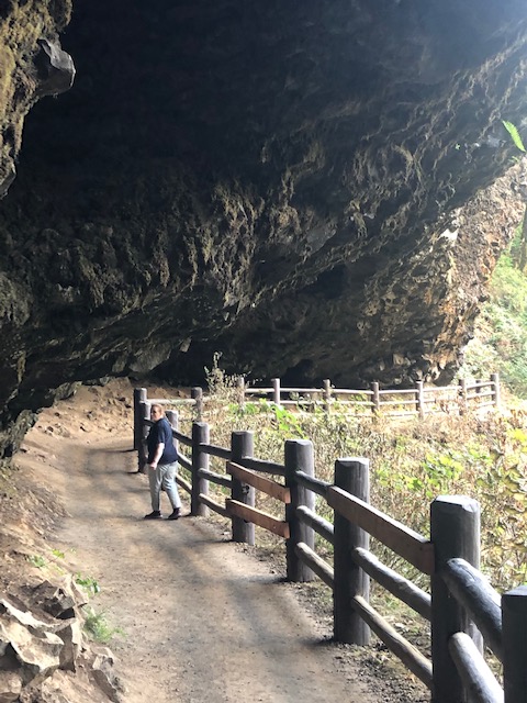 The park is a scenic wonderland with many miles of hiking trails and numerous waterfalls and the largest and most visited is the South Falls. If you’re like me, you will need to limit your hiking distance for your feet and knees; here’s a suggestion: from the South Falls parking lot, hike to the South Falls only a few hundred feet away. You can actually walk behind the 177-foot curtain of water! If you feel up to it, you can hike further along the 7.2 mile loop of the Trail of Ten Falls to view more waterfalls. You can also visit the South Falls Café in the lodge, open daily 10-6, where you can enjoy a meal and perhaps visit the gift shop. If you are nursing those knees, after the South Falls, return to your car and drive the couple of miles to the North Falls parking lot. From there you can hike a short distance to the North Falls and the Upper North Falls. Knees feeling okay? If so you can continue on to experience more of the falls.