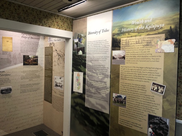 Your visit begins with a tour of some of the oldest houses still standing in the Pacific Northwest. These houses weren’t built on location but were moved here to form the heritage center. The houses include the Lee House, which originally housed four missionary families of the original Methodist Mission, and the Methodist Parsonage, both built in 1841, the Boon House of 1847, and the Pleasant Grove Church of 1858. Three of the houses are packed full of displays and interpretive panels that educate the visitor about the native tribes of the region, the Methodist Mission and its people, the Oregon Trail, and early industry and agriculture. NOTE: most of these buildings are not wheel chair accessible.